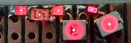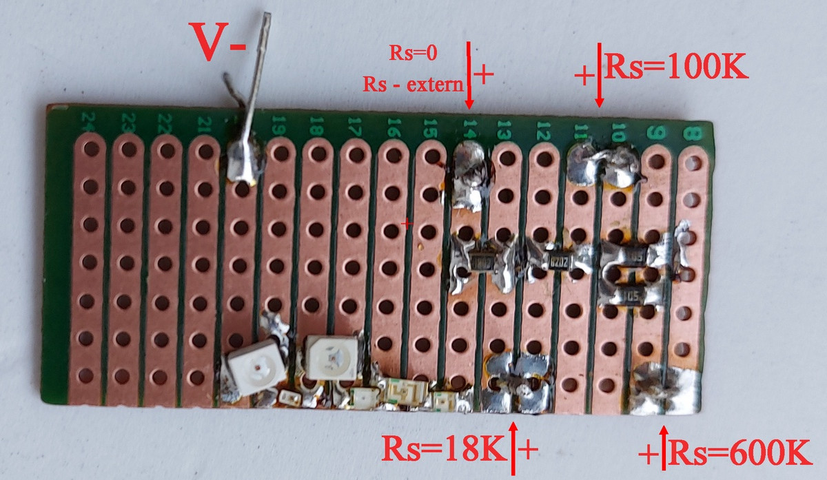 Dxxx Posted June 9, 2023 Share Posted June 9, 2023 Intro Masurarea fluxului luminos emis de un led este prohibitiv in regim de amator datorita echipamentelor costisitoare. Totusi, masuratori relative se pot face "ochioscopic", mai ales daca ajutam prin alaturarea exemplarelor comparate. Chiar daca te joci destul cu leduri cateodata constati ca nu ai experienta/date pentru anumite cazuri particulare din cele mai putin uzuale. In acest topic am de ESTIMAT eficienta emisiei de lumina la curenti minusculi. Premise teoretice Ca sa facem comparatia cat mai usor am propus inserierea exemplarelor studiate si dispunerea fizica una-langa-alta. Prin inseriere avem certitudinea ca este curent identic prin toate, deci putem sa comparam. Vrem sa incepem de pe la 1 microamper (1uA) in cazul ca se emite ceva lumina la acel curent. Pentru ca fac determinarea impreuna cu un coleg... speram ca o sa poata face el asta, folosind rezistente de limitare si un alimentator de laborator, ceva foarte simplu dar pentru care nu merita sa pierd eu timpul. Dar vad ca nu se poate, deci m-am apucat eu, desi merita sa-mi aloc timpul pentru partea ulterioara. PCB Conditia este sa nu pierd prea mult timp, dar se impune sa fac un PCB pentru ca sunt componente SMD, cum folosesc eu de obicei. Am folosit un cablaj pre-gaurit, suficient datorita simplitatii montajului. Rezistentele serie sunt defapt si ele o serie de rezistente care vor permite selectarea valorilor de 18K + 100K + 600K, incat sa se masoare curentul fie cu ampermetrul, fie masurand caderea pe rezistenta serie, si alimentatorul va trebui sa dea incepand cu circa 10V, pana la tensiunea maxima de 32V, domeniile vor avea si o suprapunere lejera. https://i.postimg.cc/Fs8jHbHr/0-main.jpg Pentru curenti peste 1mA va trebui sa folosesc rezistente de limitare de valoare mai mica, externe dar zona aia este cea normala, care nu ma intereseaza in acest caz. Ledurile vor fi referite ca nr 1 cel mai din stanga din poza, si 6 cel mai din dreapta. Lumina (ceva-ceva) la 1 microamper... Eram si eu curios cam la ce curent incepe emisia, dar oricum ma asteptam la microamperi. Nu poate fi considerat decat ca un "licar" nu lumina propriu zisa, dar ceva este. La 0,6 uA: https://i.postimg.cc/8kyRqg8r/1-0-6u-A.jpg Apoi la 1,5uA: https://i.postimg.cc/BbvxXMF6/2-1-5u-A.jpg La 3uA: https://i.postimg.cc/d3SGdrR9/3-3uA.jpg Deja la 10uA se emite ceva definibil ca lumina, vizibila clar in conditii de ambient mai intunecos: https://i.postimg.cc/mDjYL0tJ/4-10uA.jpg Peste 20-30uA deja incepe ca lumina sa fie vizibila si cand mediul este luminat "normal" aici este la 50uA: https://i.postimg.cc/wT7Xz4H4/5-50uA.jpg La curenti mai mari deja lumina incepe sa depasesca domeniul dinamic al aparatului de fotografiat, si nu mai este neaparat relevant, dar interesante erau valorile de mai sus, deja peste 50uA incep sa fie situatii mai comune. Cam asa ar fi la 1mA, se vede ca ledurile din dreapta (4, 5 si 6) au eficienta mult mai mare la curenti "normali" desi la curenti minusculi nu era deloc evident ca asa ar fi: https://i.postimg.cc/pTRQt2XK/7-1mA.jpg LAMURIRI SUPLIMENTARE: Domeniul uzual de utilizare a unui led de semnalizare (deci nu de iluminare) este la curenti de ordinul miliamperilor, pana la 20mA, curent suportat uzual de toate tipurile de led. Parametrii de eficienta dati in DS se refera evident la acest domeniu de utilizare, si in mod normal te poti lamuri clar de parametrii respectivi, poti sa compari eficienta a doua leduri. INSA subiectul este domeniul de curenti unde de abia incepe sa devina vizibila radiatia, curent cu probabil cu 3 ordine de marime mai mic. In acest interval nu se gasesc uzual date de catalog, nu ajungi practic pe acolo si nu am auzit referiri. Recunosc insa ca nici nu am sapat prea mult pe subiect pentru ca abordarea expermentala era mai la indemana. SUBIECT: determinarea curentului minim la care emisia poate fi observata in conditii normale. APLICATIE: montaj alimentat din baterie miniatura, fiind necesara viata cat mai lunga si intensitate luminoasa observabila. NECESAR: comparatia eficientei emisiei la curenti cat mai mici si selectarea celui mai potrivit (adica eficient) led din lotul testat. LEDURI: sunt incluse numai leduri SMD, culoare rosu, disponibile la furnizori. Ideea este ca odata terminat experimentul (sunt disponibile numai cateva leduri pentru testare) sa se faca o aprovizionare cu o cantitate semnificativa din ledul dovedit cel mai potrivit. Link to comment
